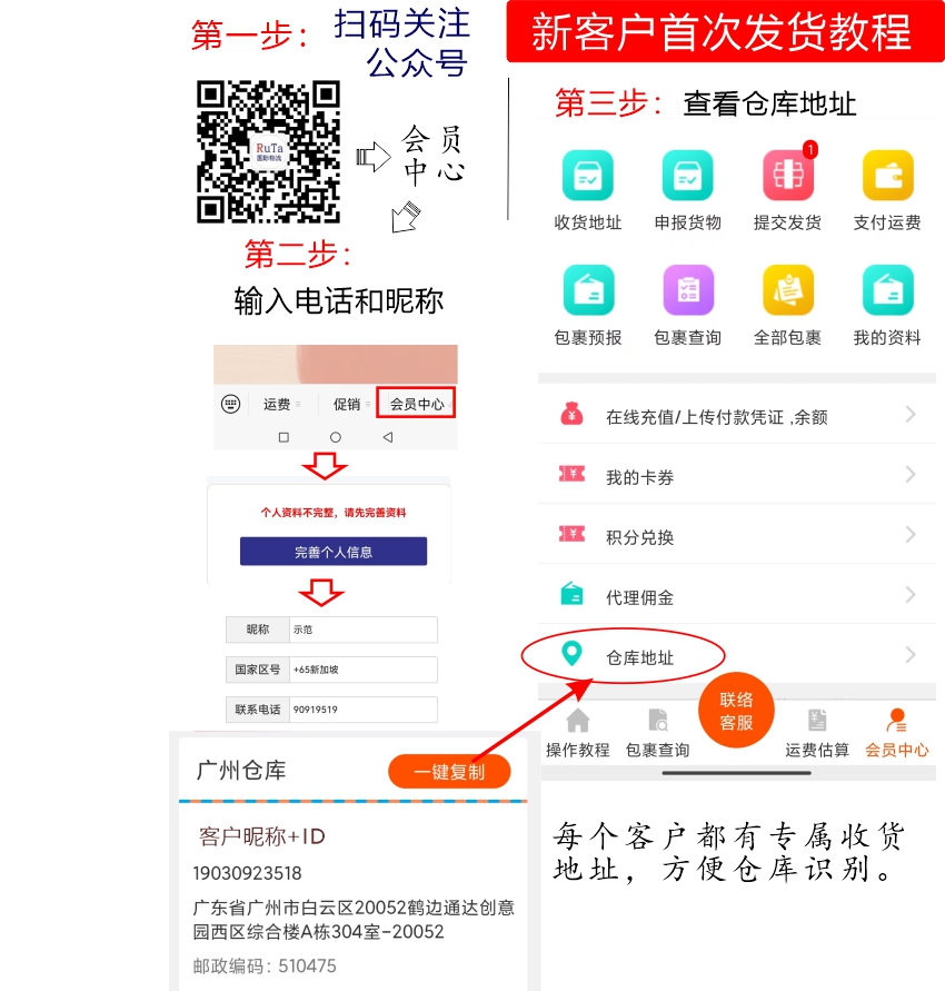 新客户注册、查看仓库专属收货地址教程: