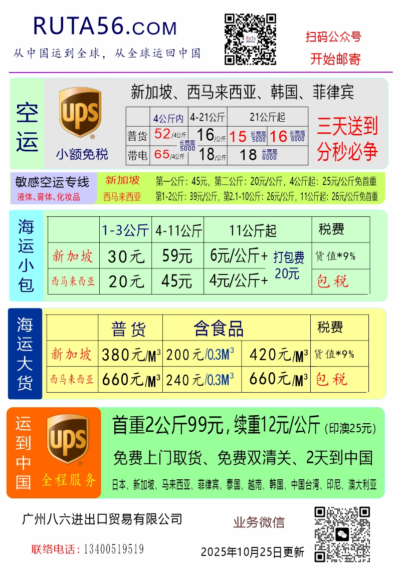 RUTA国际物流,从2017年开始运营新加坡和马来西亚集运,运营经验丰富,不断创新突破,为我们的客户提供价格优惠、便利简单的国际空运和海运服务,RUTA国际物流的新加坡和马来西亚线路